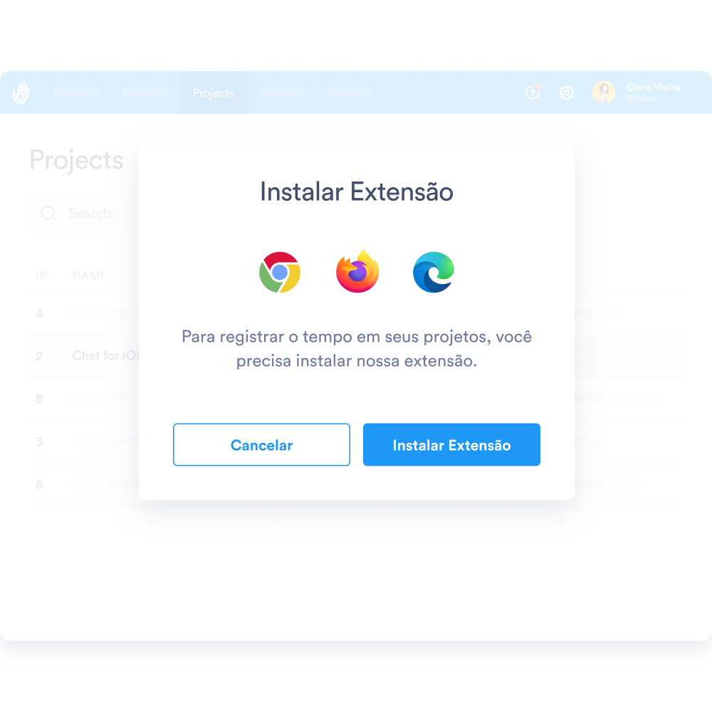 Após convidados, você e seu time precisarão fazer o download do plugin Oitchau em seus navegadores para realizar o time tracking.