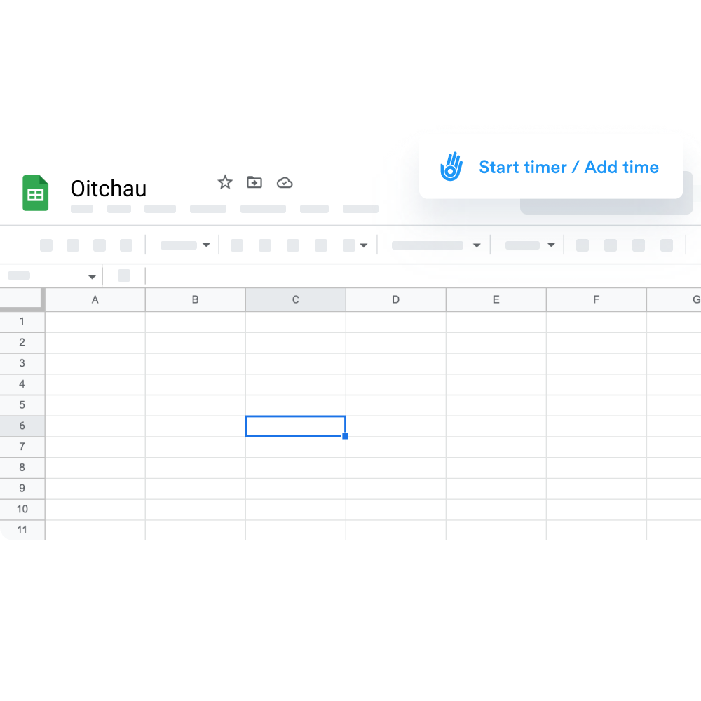 Dentro do próprio Google Sheets, você pode mensurar o tempo trabalhado em cada planilha. Você não precisa mudar de tela e nem criar o hábito de usar uma nova ferramenta. Com apenas um clique, você inicia ou para o cronometro e as informações são automaticamente salvas no Oitchau.