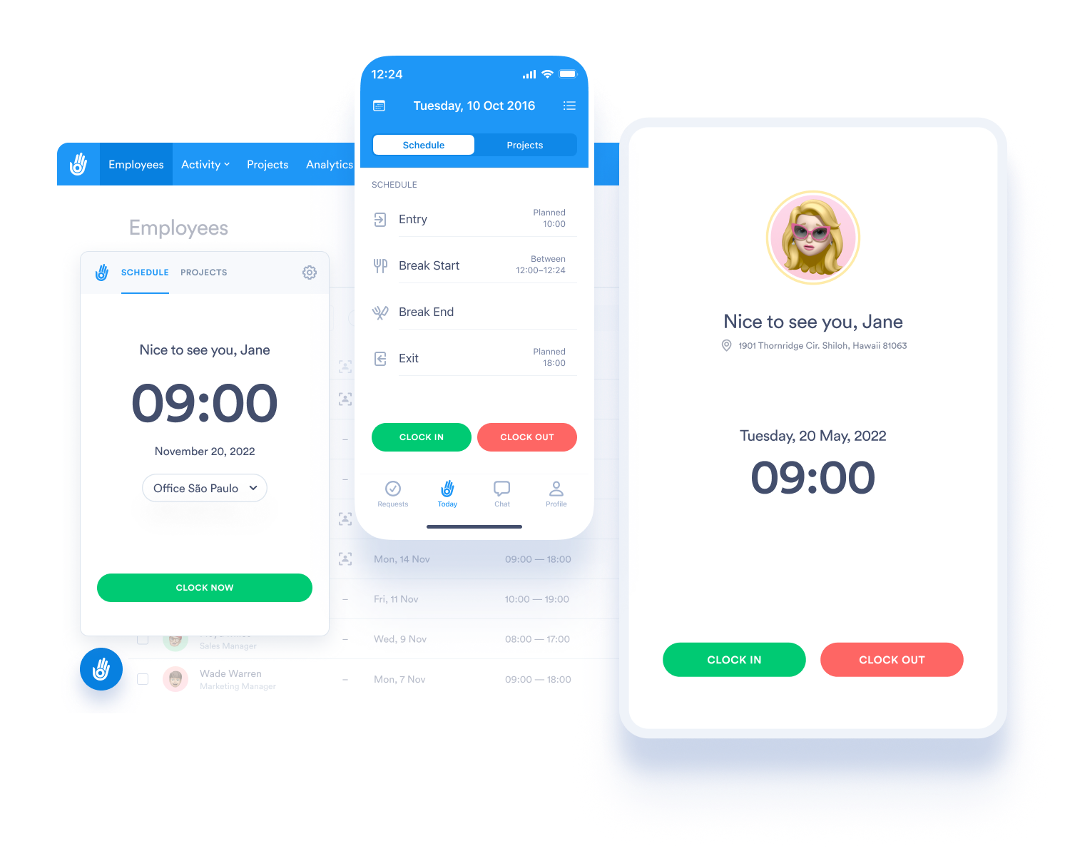 Além da simplicidade de registrar o ponto pela extensão do Chrome, o gestor da equipe poderá permitir o registro por Smartphone, Computador, Tablet (kiosk) com reconhecimento facial ou até mesmo integrado ao REP.