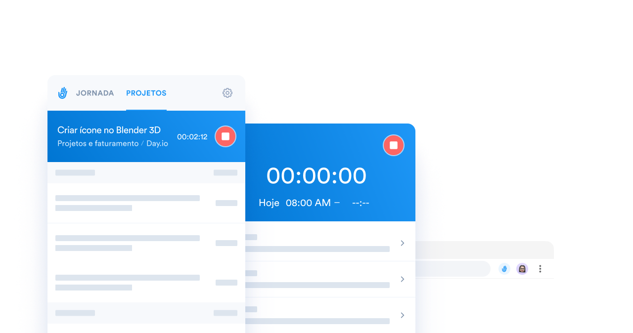 Seu time aponta todas as atividades dedicadas em cada tarefa em poucos cliques. Dentro da própria extensão, seu colaborador inicia o registro da atividade sem a necessidade de sair da ferramenta. Com a extensão do chrome, basta selecionar a tarefa e iniciar a contagem do tempo.