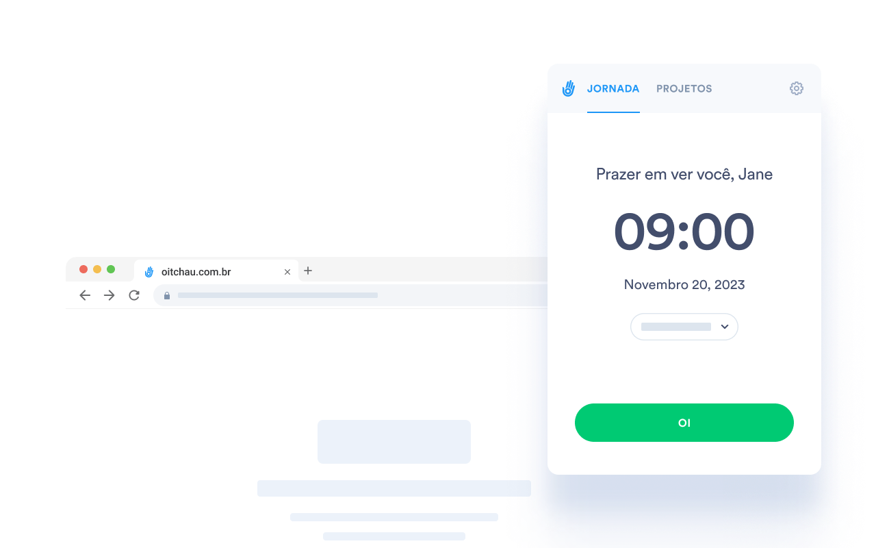 Para fazer o controle de ponto e gestão de tempo com a extensão do Google Chrome, você precisa criar sua conta gratuitamente no Oitchau, cadastrar sua empresa e selecionar a funcionalidade de controle de ponto e/ou gestão de projetos.