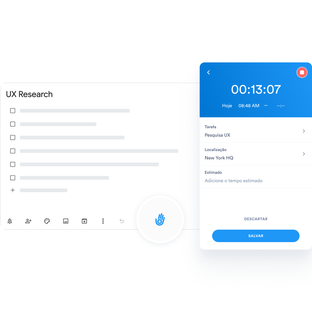 Com apenas um clique você inicia ou para o time tracking dentro do próprio Google Keep. Ou seja, você não precisa mudar de aba para registrar e mensurar o tempo trabalhado em cada nota. O tempo registrado é salvo automaticamente no sistema em nuvem da Oitchau.