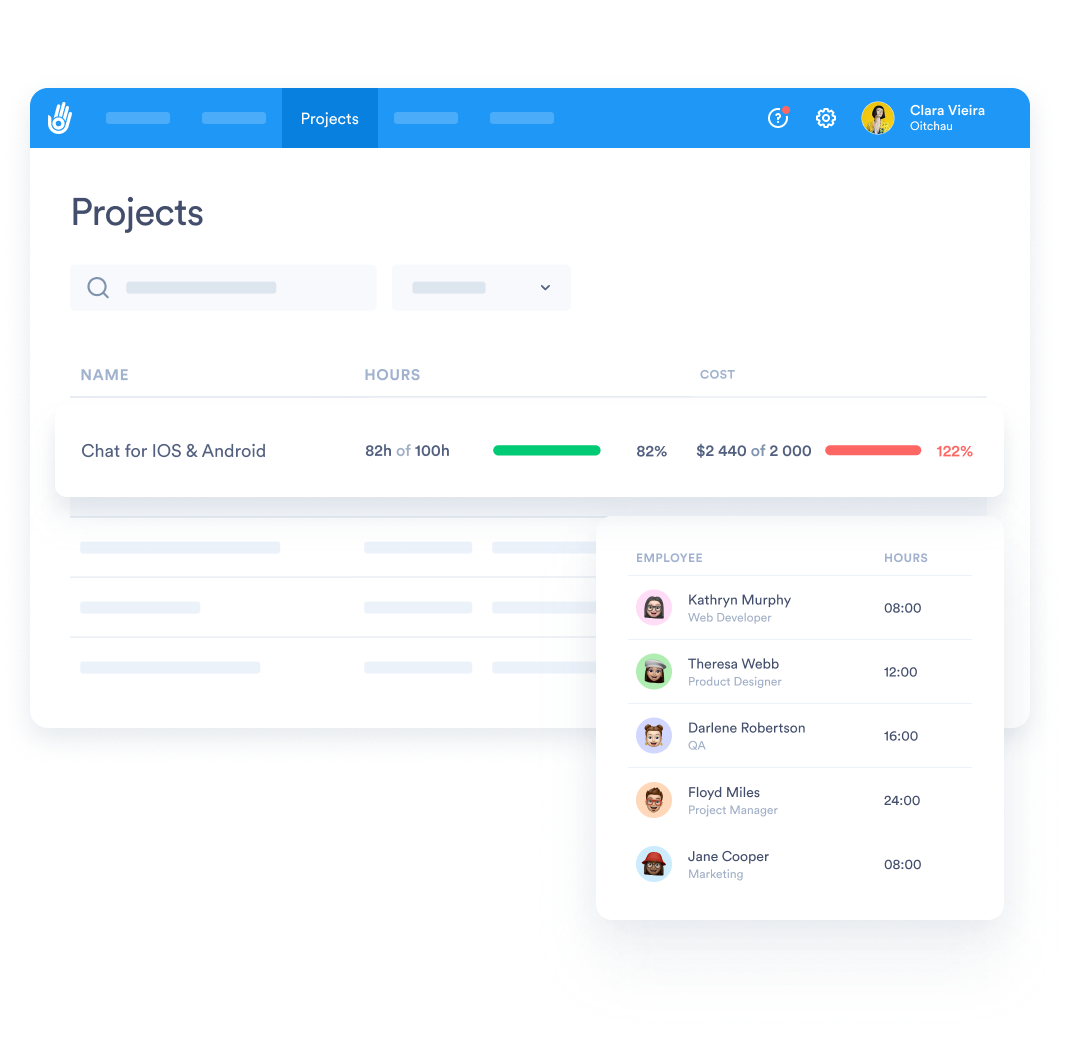 Acompanhe o tempo trabalhado em cada tarefa, por colaborador e localização e tenha o desempenho da equipe em tempo real. Com o Oitchau, tenha a previsibilidade do custo total do projeto.